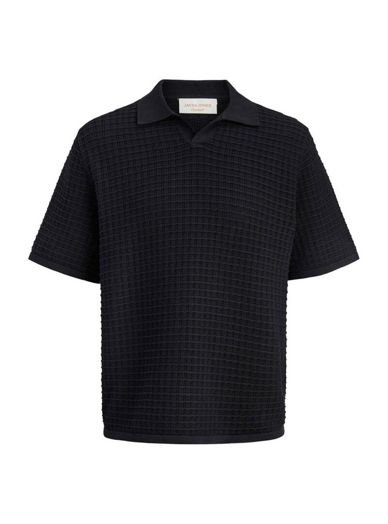 Polo Jack and Jones. Modello Nantucket. Colore nero. Colletto con scollo a V. Manica corta. Vestibilità ampia. Tessuto a maglia a coste.
