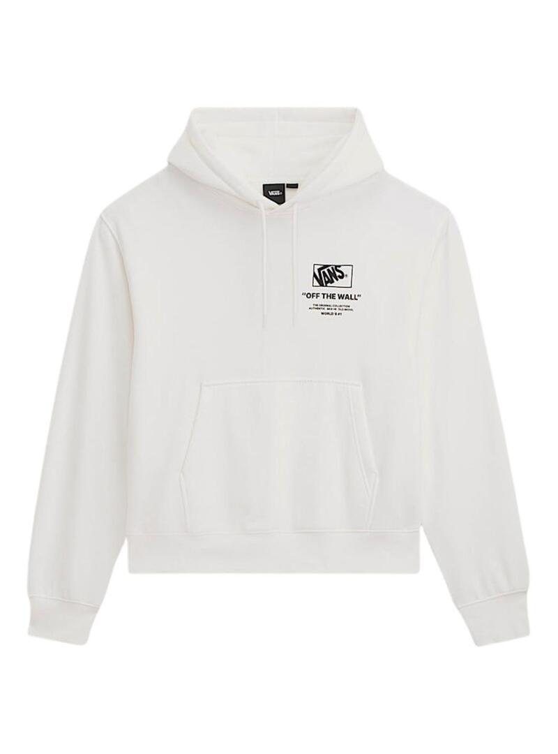 Felpa Vans. Modello Stacked. Colore bianco. Cappuccio con cordino regolabile. Tasca marsupiale. Logo stampato sul petto e sulla schiena in colore nero. Orli a costine. Vestibilità oversize.