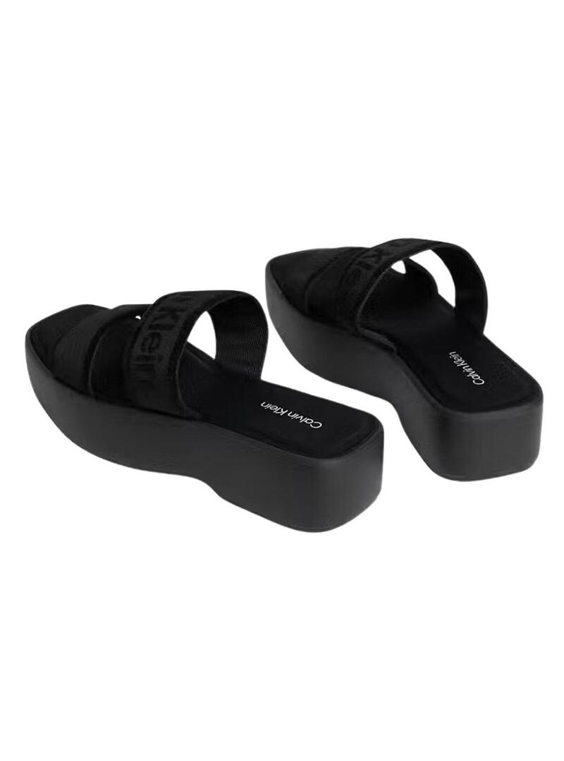 Sandali Calvin Klein Jeans. Modello Flatform. Colore nero. Doppia fascia con logo in tono. Punta quadrata. Piattaforma alta 5cm.