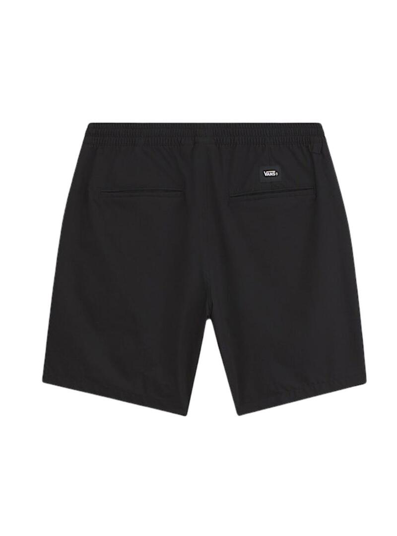 Bermuda Vans. Modello Range. Colore nero. Vita elastica regolabile con cordino. Tasche laterali. Tasche posteriori a filetto. Etichetta ricamata del marchio. Vestibilità ampia.