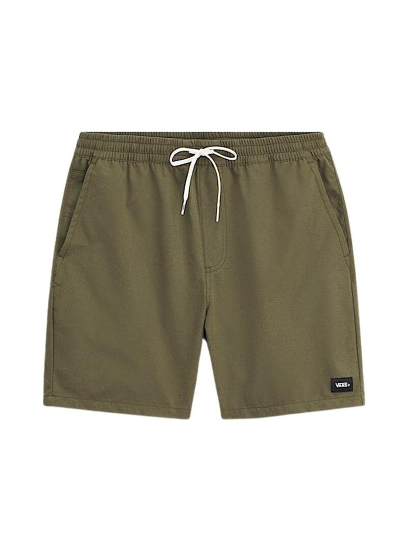 Bermudas Vans. Modello Range. Colore verde. Vita elastica con cordino regolabile. Tasche laterali. Tasche a filetto posteriori. Etichetta ricamata del marchio. Vestibilità comoda.