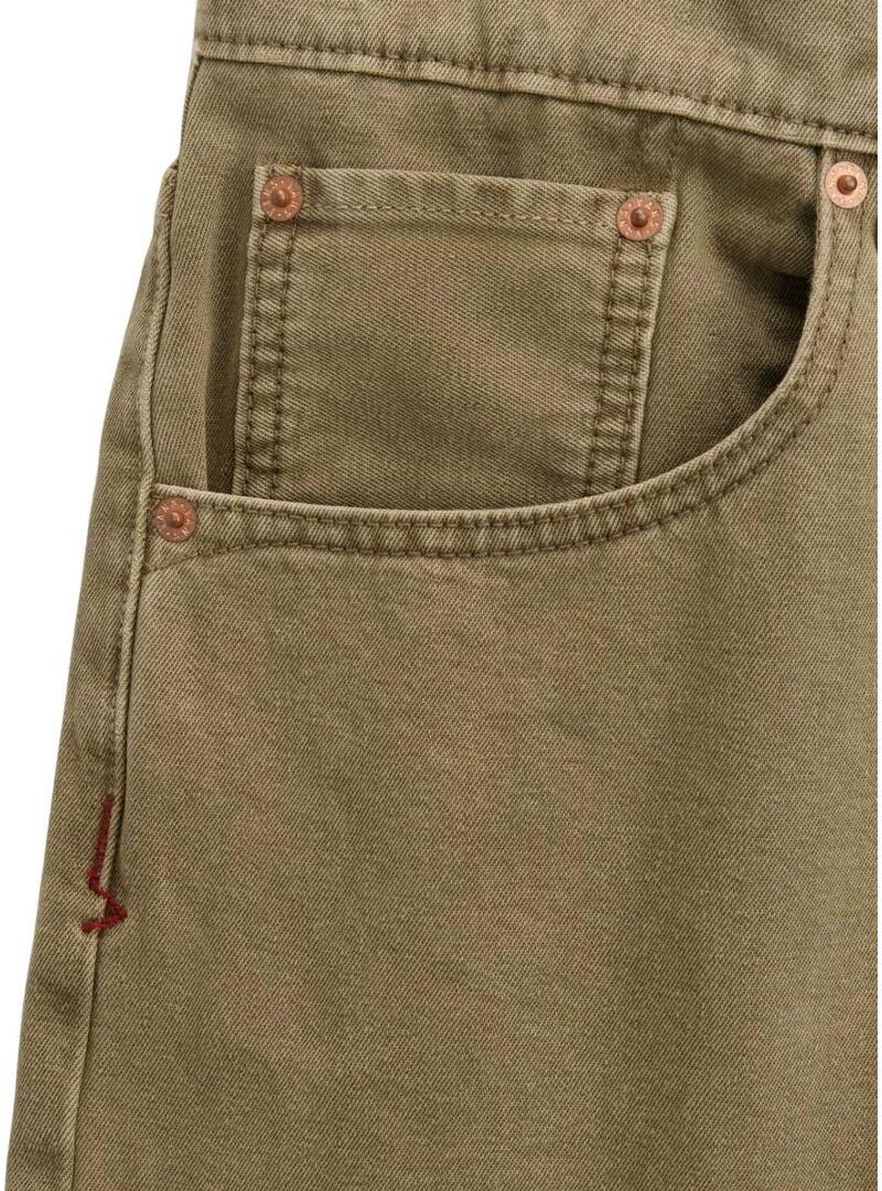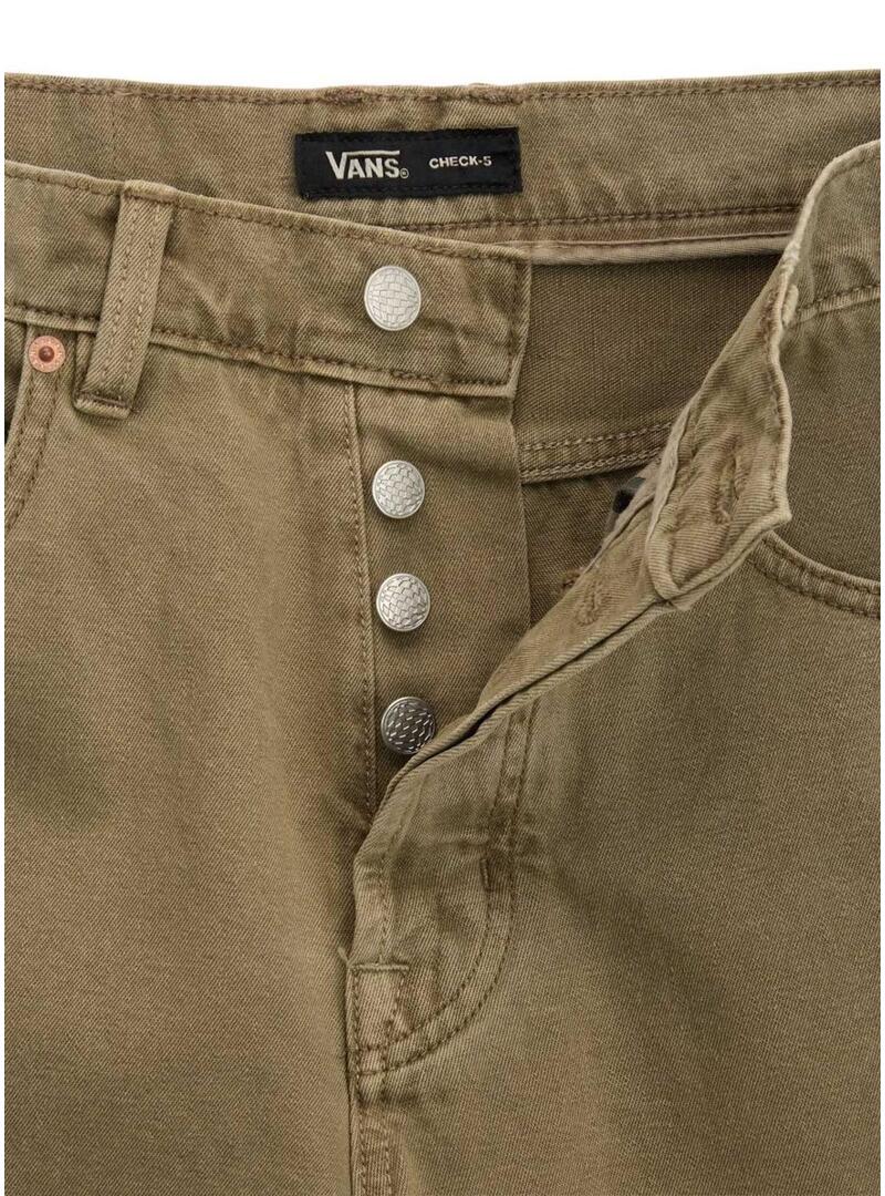 Bermuda Vans. Modello Baggy. Colore verde. Vestibilità ampia. Chiusura con bottoni metallici. Cinque tasche. Cuciture in tinta. Patch del marchio in vita. Tessuto denim tinto.