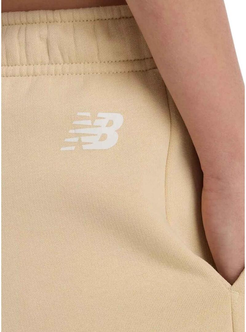 Pantaloni corti New Balance. Modello in pile. Colore cammello. Tasche laterali. Logo stampato sui fianchi con un aspetto vintage. Vita elastica con coulisse. Stile jogger.