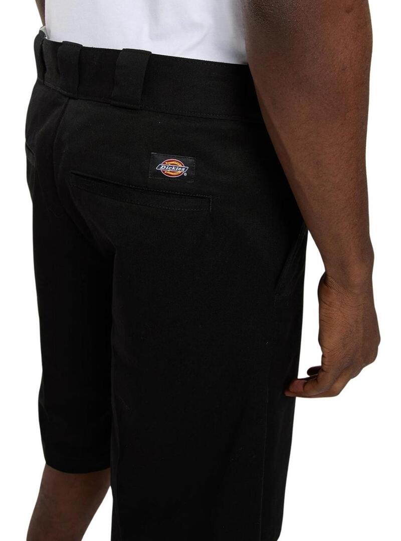 Bermuda Dickies. Modello 247. Colore nero. Chiusura con bottone e zip. Lunghezza sopra il ginocchio. Tasche laterali. Tasche posteriori stile cinese. Tasca laterale con etichetta del marchio. Vestibilità dritta.