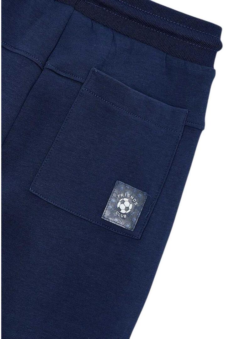 Pantalone jogger di colore blu navy. Vita elastica con coulisse regolabile. Tasche anteriori con chiusura a zip. Tasca a toppa sul retro con dettaglio del logo. Fondo rifinito con polsino elastico.