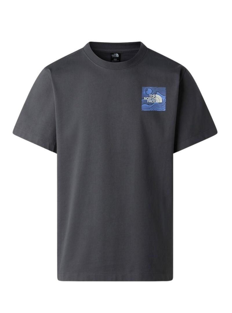 Maglietta The North Face. Modello Mountain. Colore antracite. Girocollo. Manica corta. Vestibilità ampia. Illustrazione stampata sulla schiena in blu e rosa. Logo stampato sul petto.