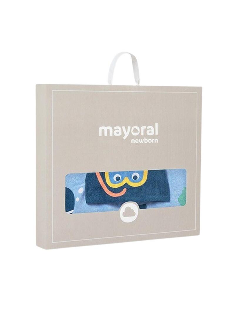 Accappatoio Mayoral blu per neonati con motivo di sottomarino.