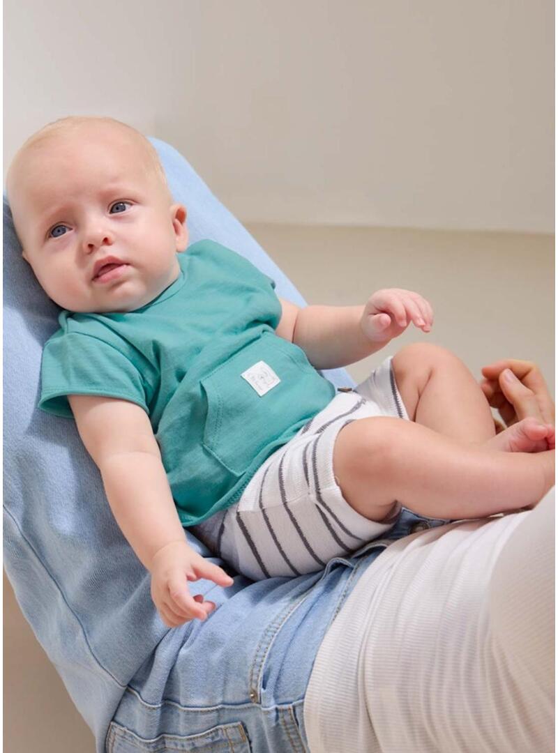 Pacco 4 pezzi bambino magliette e pantaloncini verde acqua e grigio