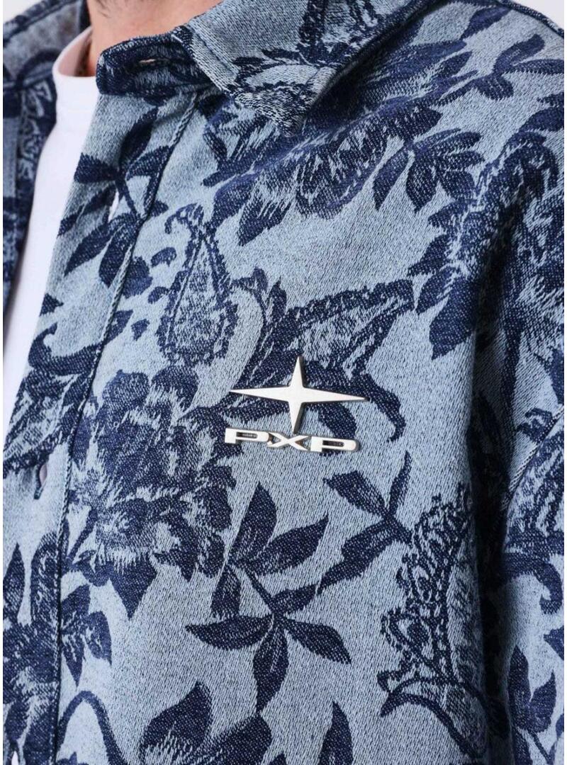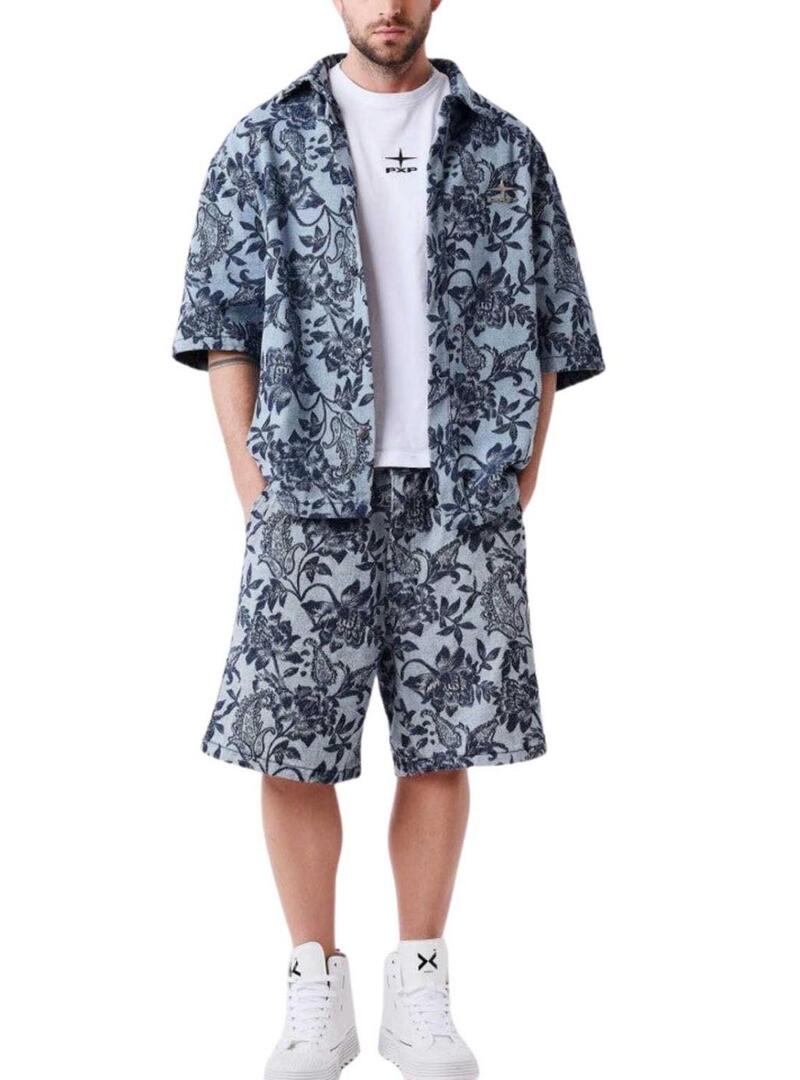 Camicia Project x Paris. Colore blu. Tessuto jacquard testurizzato. Stampato floreale. Vestibilità ampia. Taglio quadrato. Maniche corte. Chiusura con bottoni. Logo metallico sul petto.