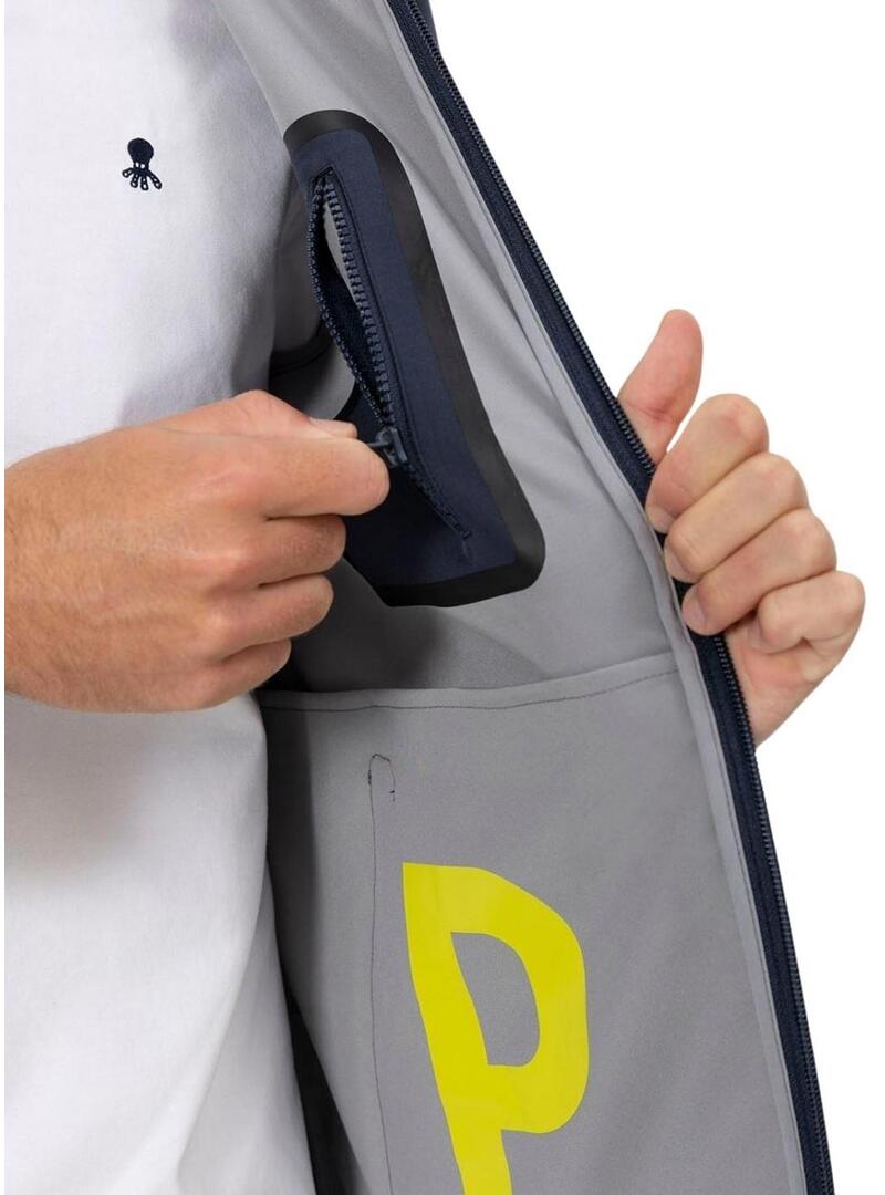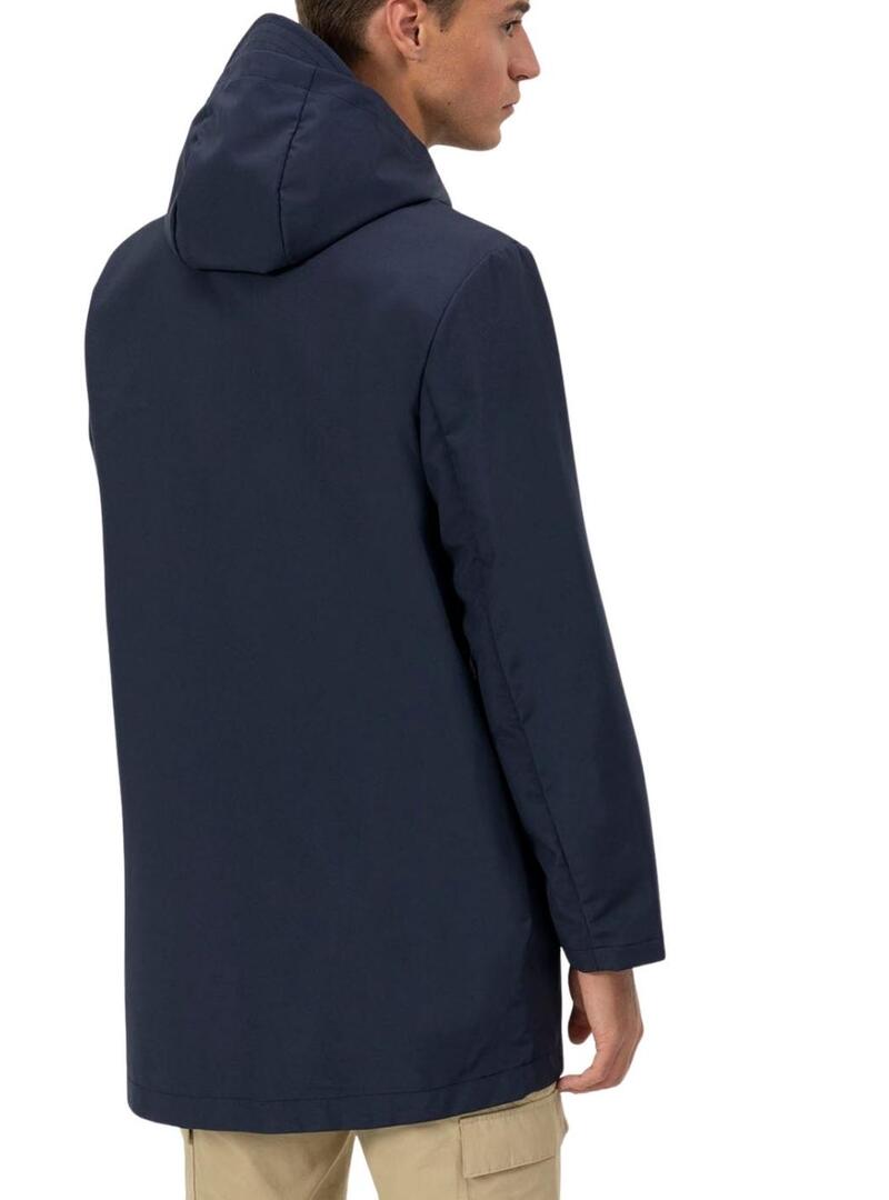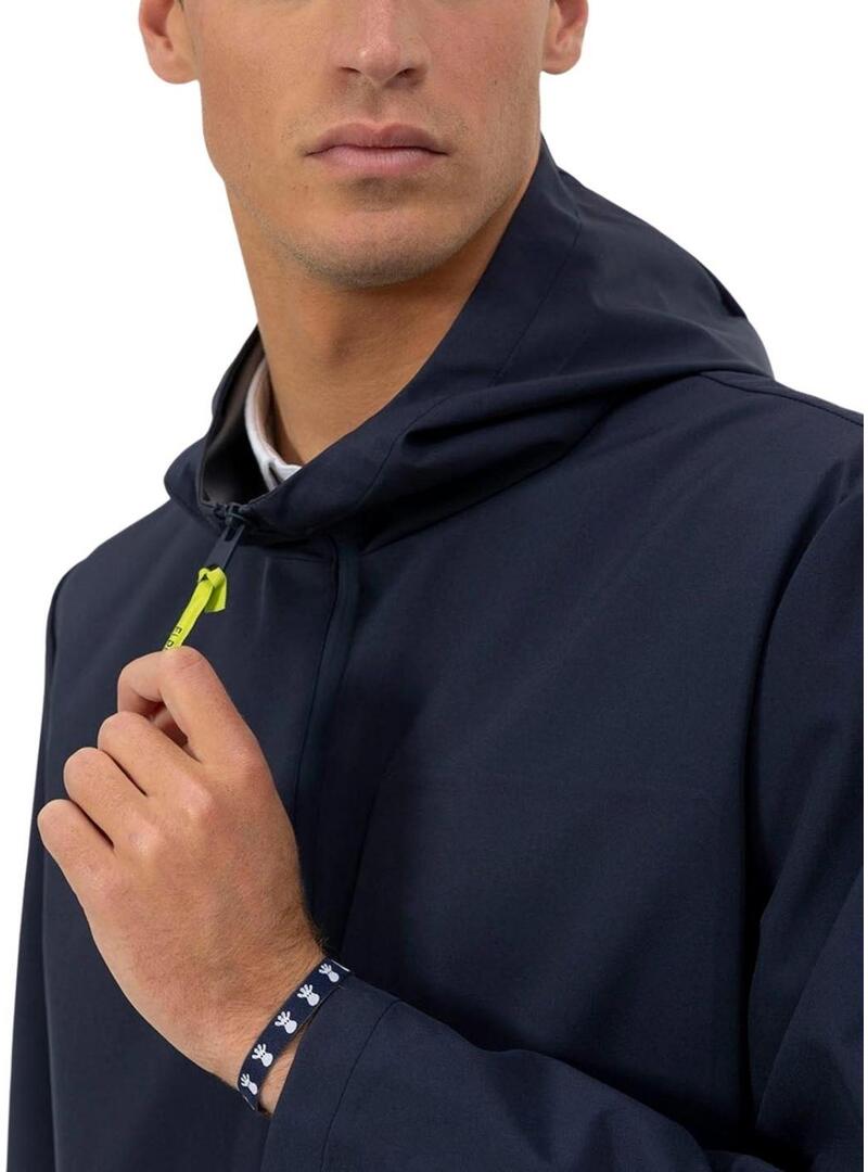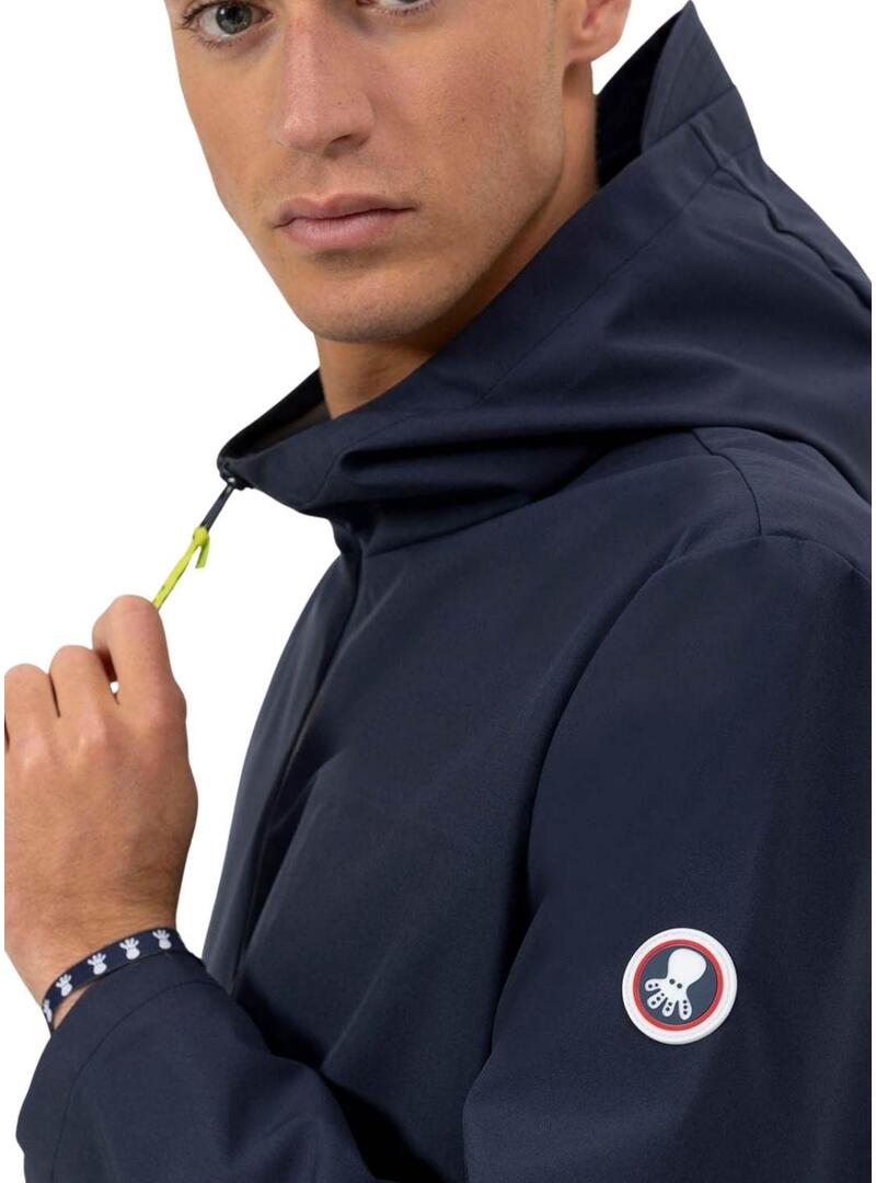 Parka Il Polpo. Modello impermeabile. Colore blu scuro. Chiusura con zip bidirezionale. Tasca interna con zip. Tasche laterali. Collo alto con cappuccio. Lunghezza fino all'anca. Dettagli in verde neon.