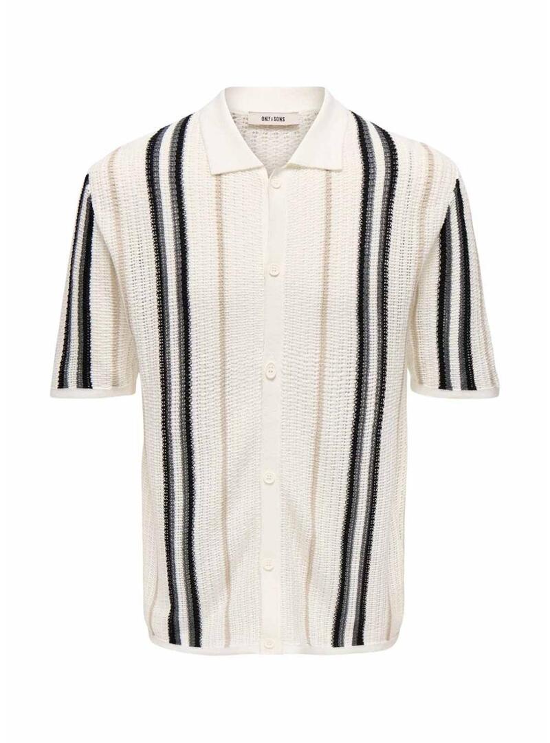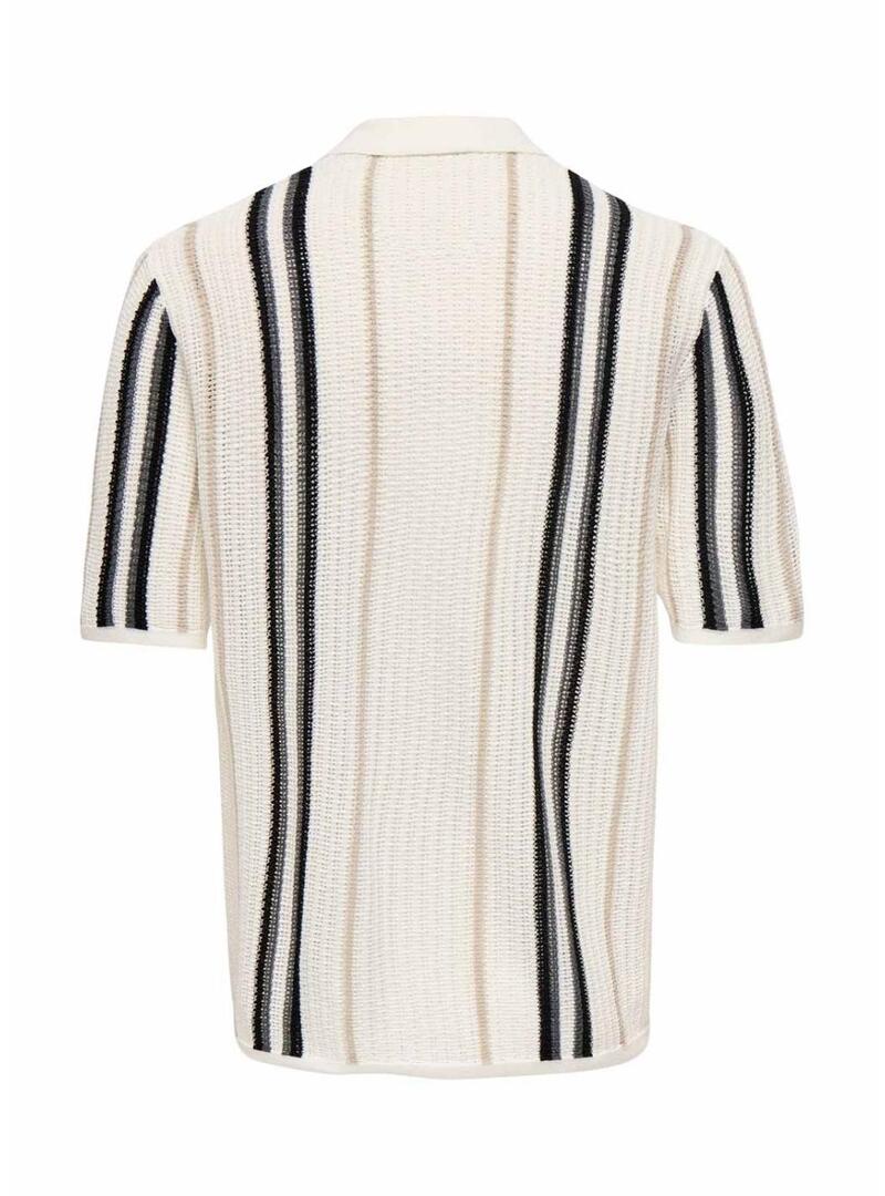 Polo Only and Sons. Modello Leon. Colore beige. Stile cardigan. Chiusura con bottoni frontali. Manica corta. Colletto a camicia. Vestibilità larga. Maglia a righe verticali in colore.