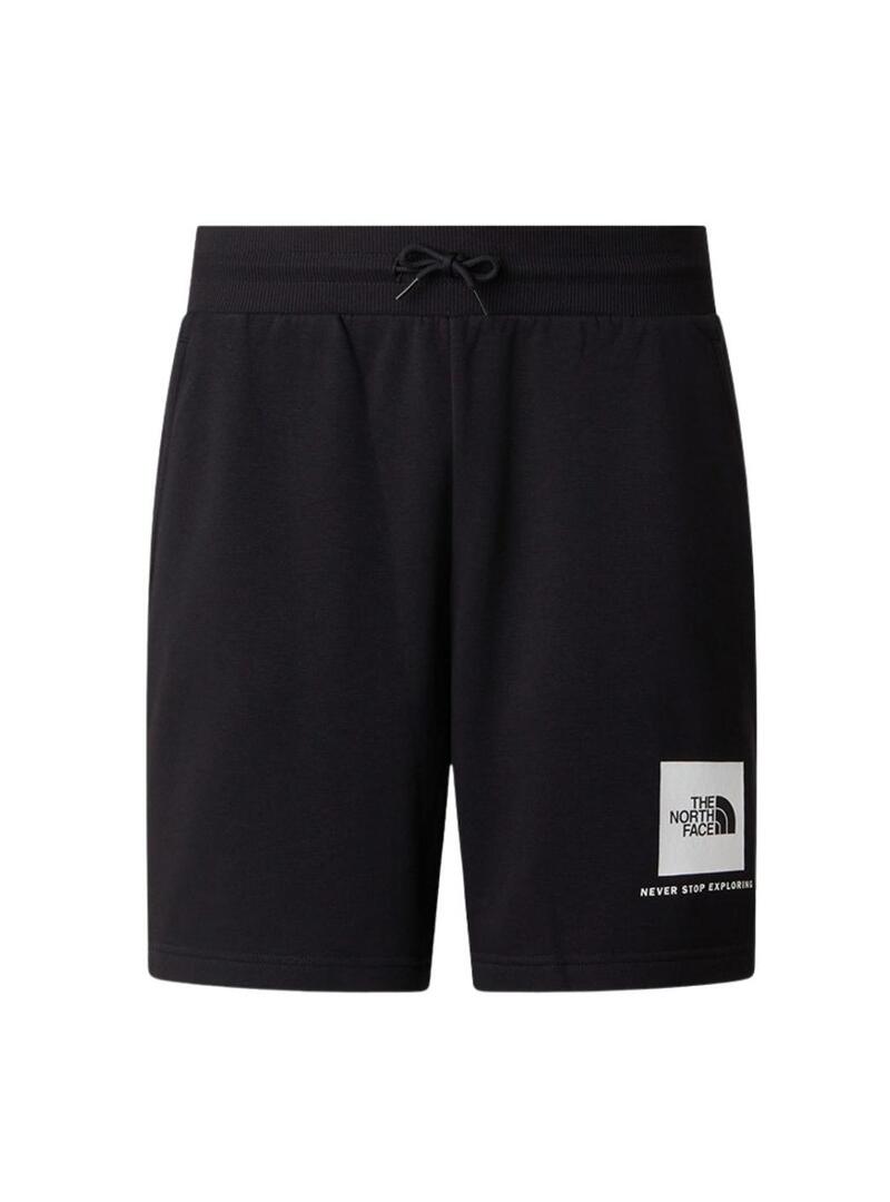 Bermuda The North Face. Modello Box. Colore nero. Stile jogger. Vita elastica con cordino. Vestibilità dritta. Tasche laterali. Logo stampato a scatola sul fondo. Dettagli in bianco.