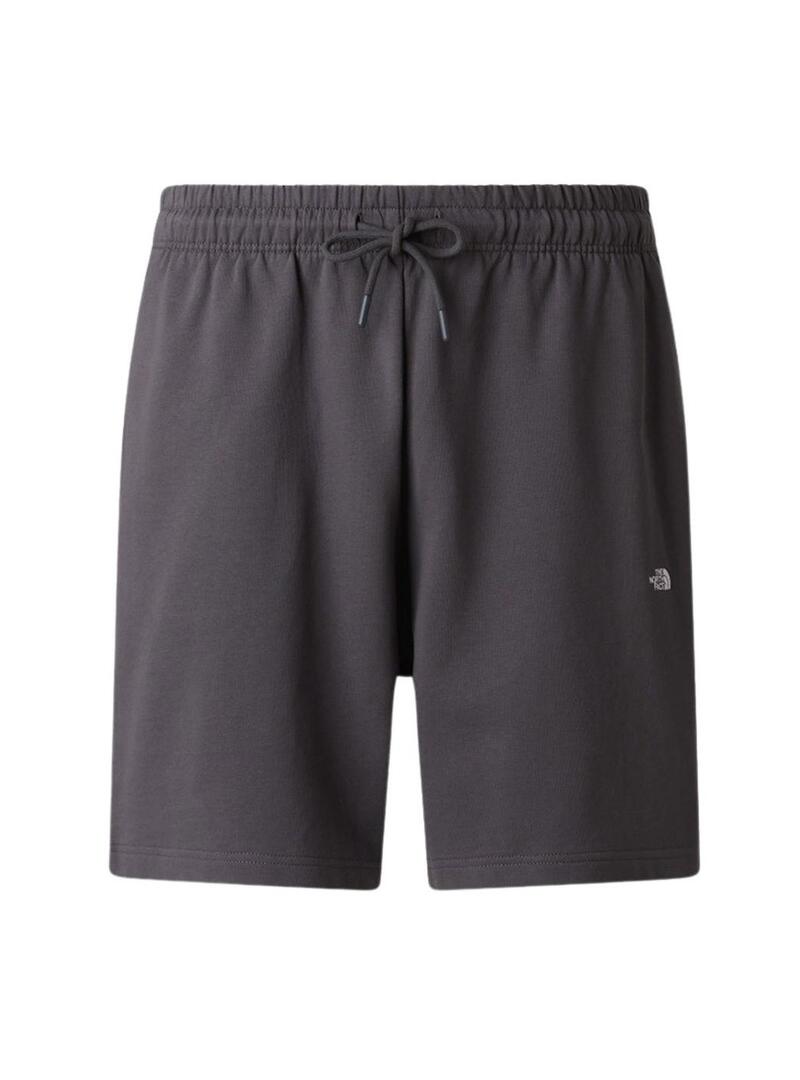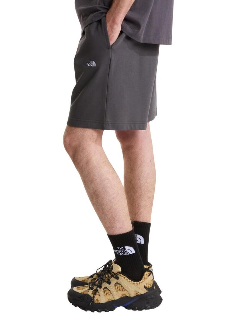 Bermuda The North Face. Modello largo. Colore grigio antracite. Vita elastica con cordino. Tasche laterali. Logo minimalista stampato sull'anca in colore bianco.