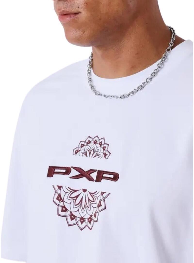 Maglietta Project x Paris. Modello Cambia Il Gioco. Colore bianco. Logo ricamato in granata sul petto. Illustrazione mandala stampata sul petto e sulla schiena. Maniche corte. Collo rotondo. Vestibilità ampia.