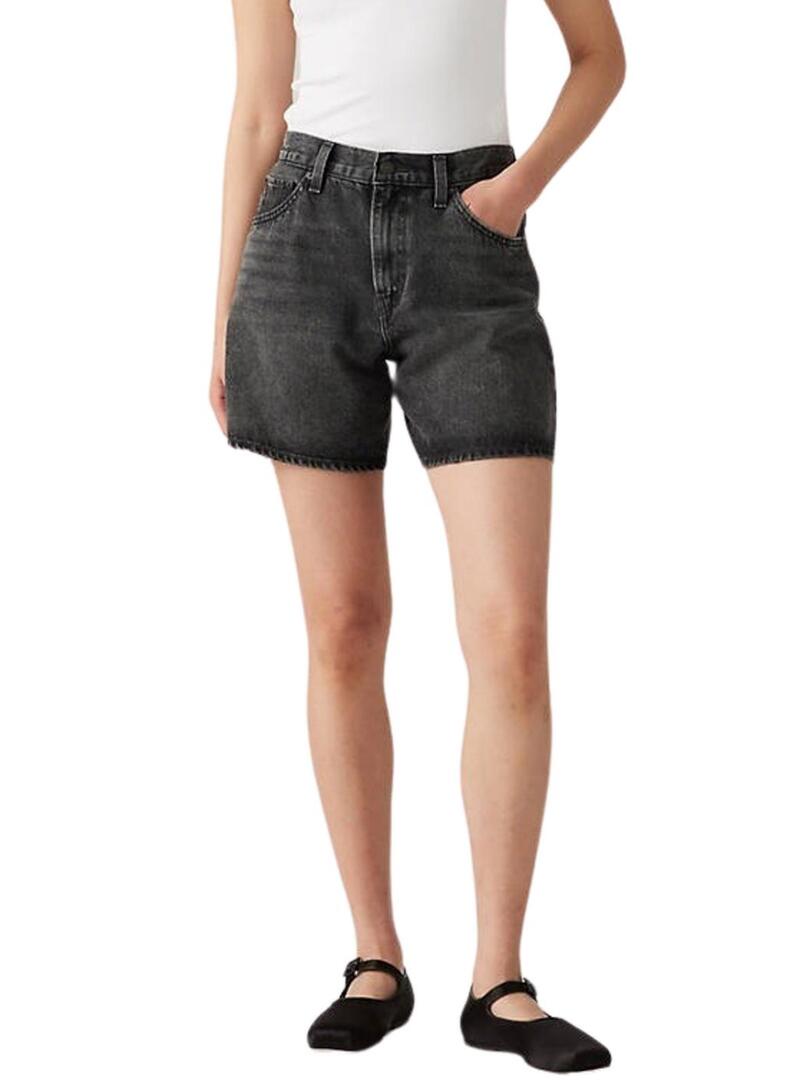 Bermuda in denim Levis. Modello High Baggy. Denim nero con effetto lavato. Cinque tasche. Patch del marchio in vita. Stile classico. Chiusura con bottone e zip. Vita alta.