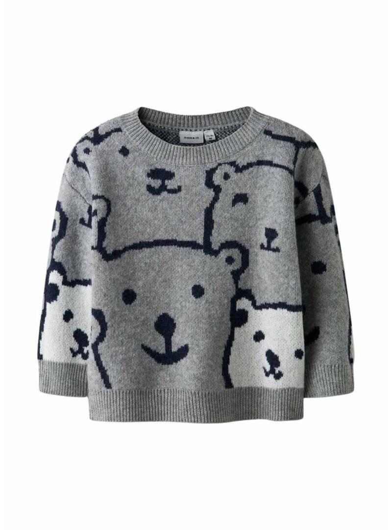 Maglia Name It. Colore grigio. Girocollo. Manica lunga. Stampa di orsi. Rifiniture a costine.