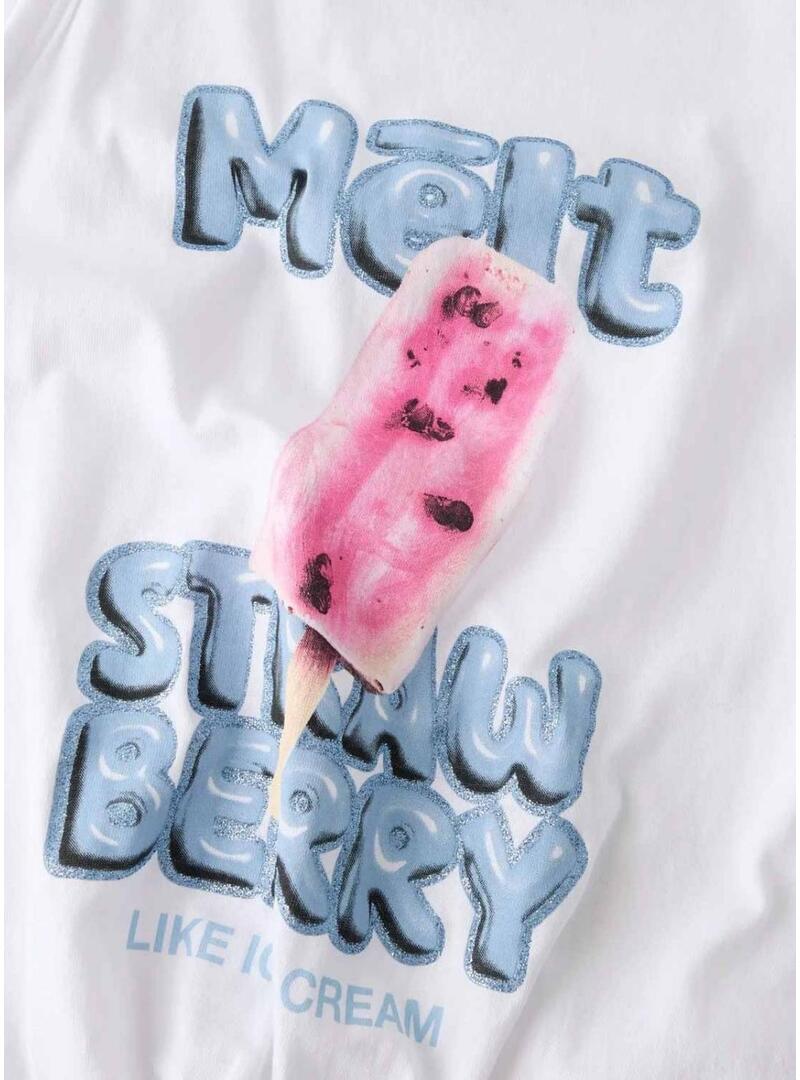 Top Name It. Modello Fadeaz. Colore bianco. Senza maniche. Collo rotondo. Stampa sul petto con glitter. Dettaglio di fiocco regolabile nella parte anteriore. Realizzato in cotone biologico. Taglio regolare.
