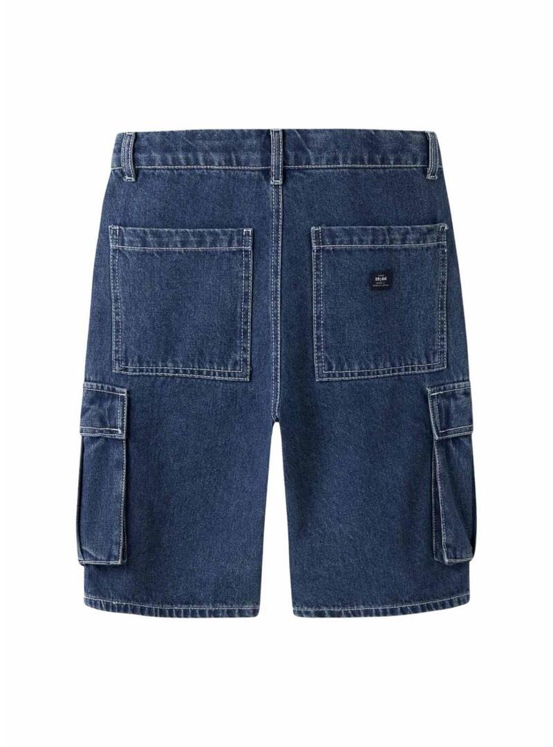 Nome Bermuda. Modello Ben Cargo. Tessuto denim. 5 tasche. Tasche laterali. Stile cargo. Vita elastica all'interno. Chiusura con zip e bottone. Taglio largo. Effetto consumato.
