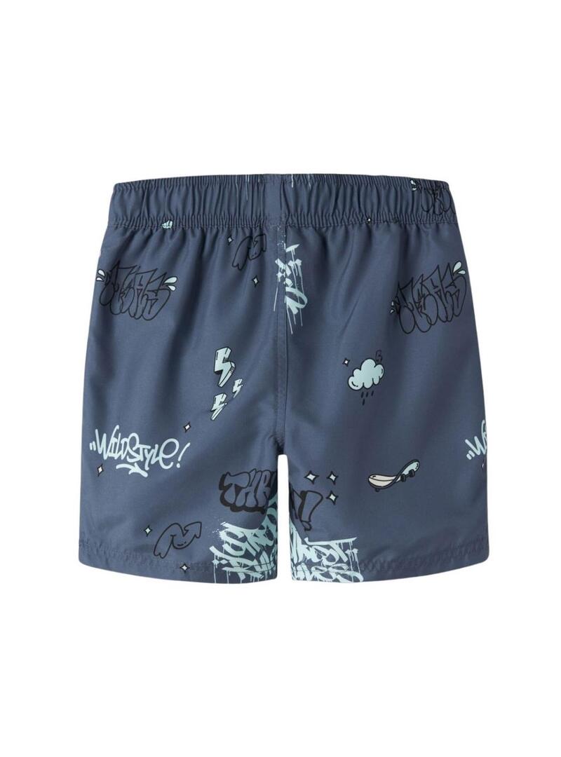 Costume da bagno Name It. Colore blu. Stampato. Vita in gomma regolabile con lacci. Tasche laterali.