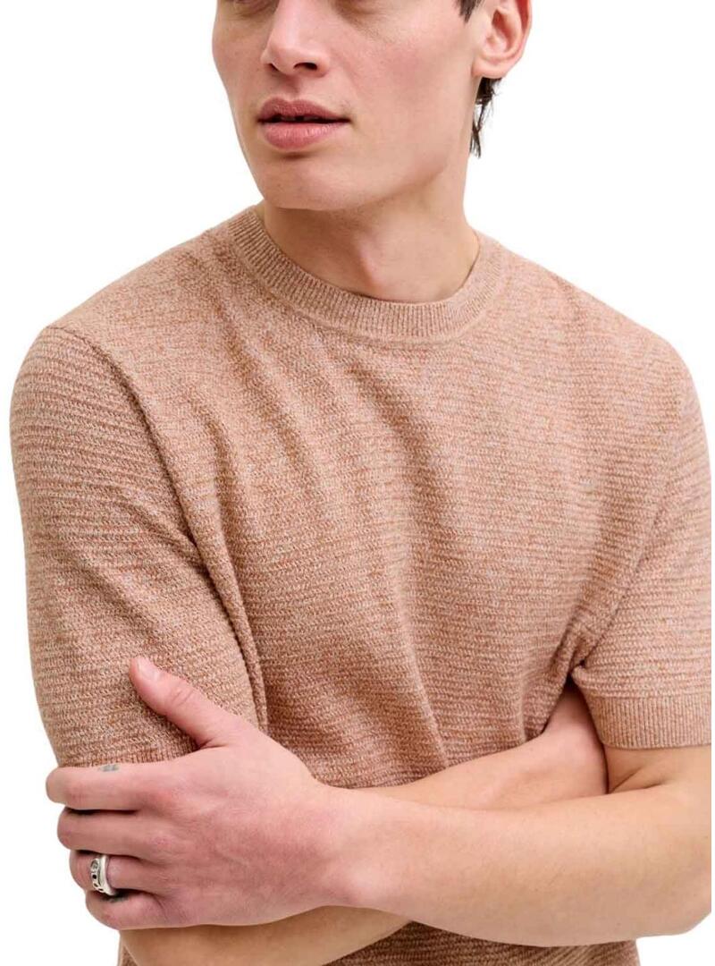 Maglietta Jack and Jones. Modello Bluriley. Colore corallo. Colletto rotondo. Manica corta. Orli a costine. Vestibilità regolare. Tessuto a maglia.