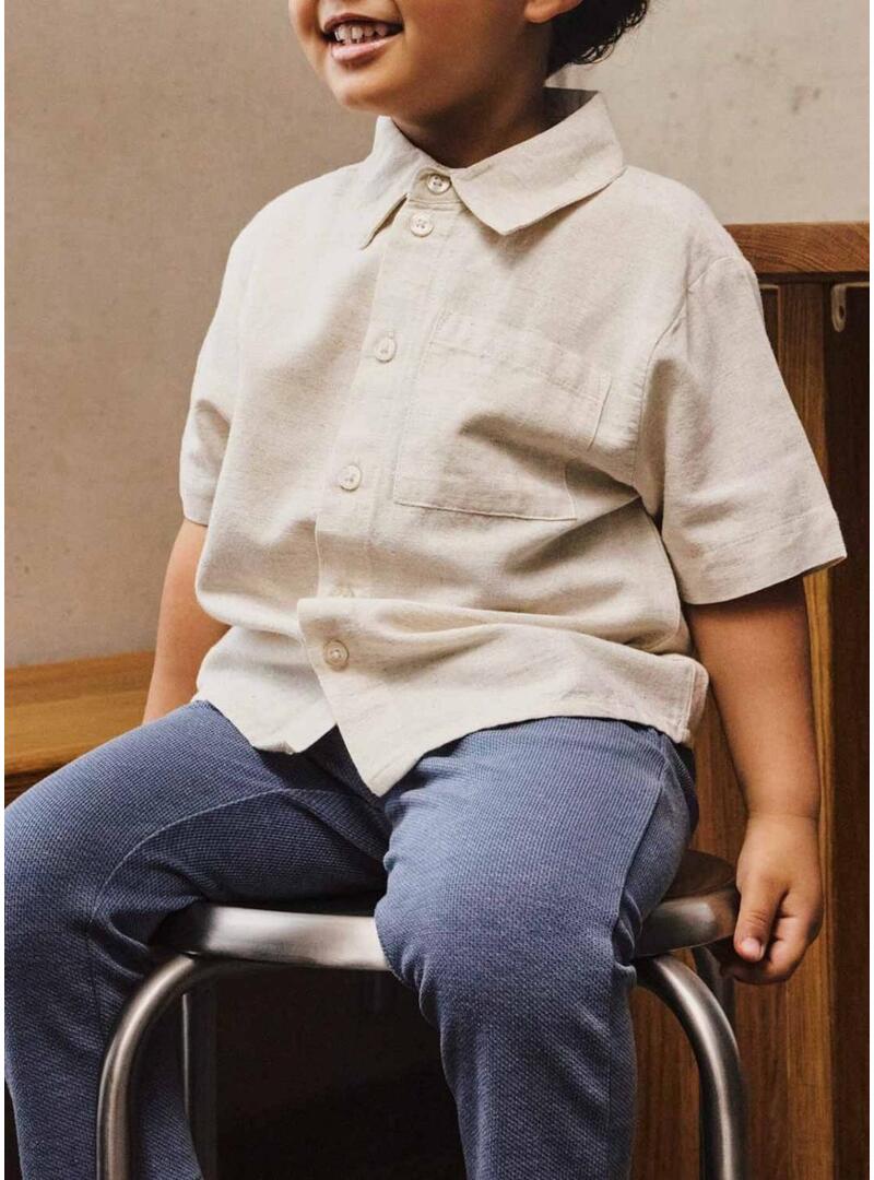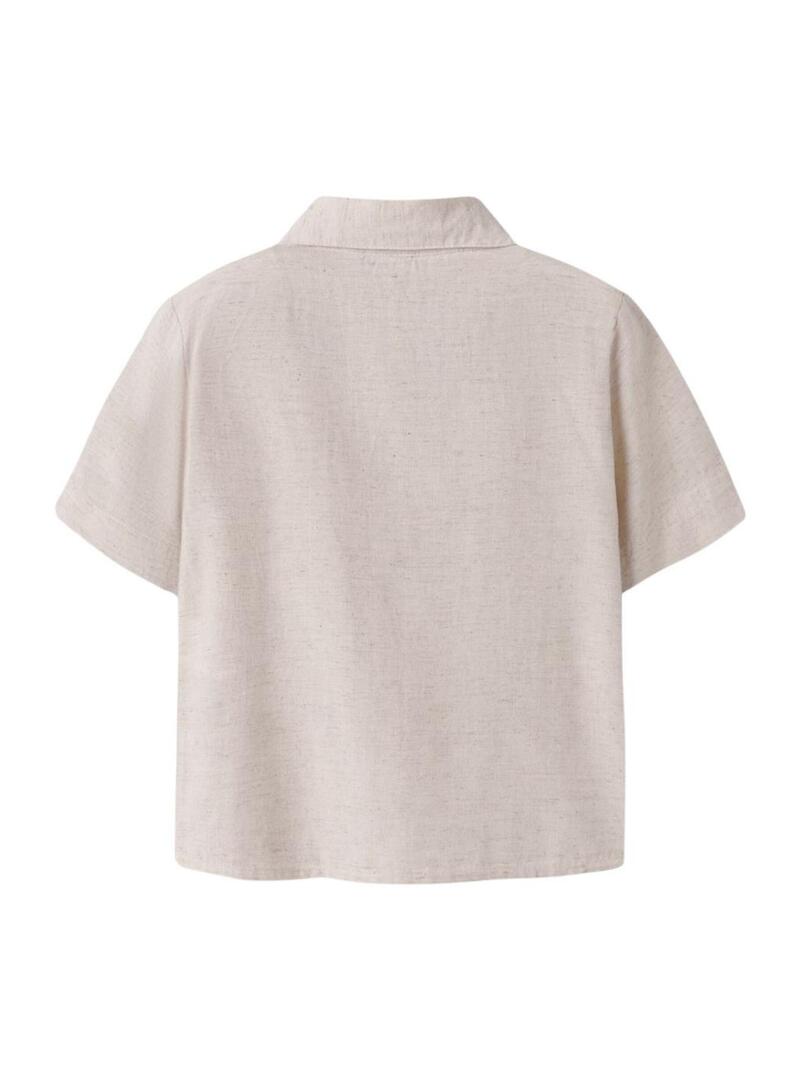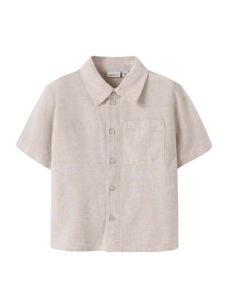 Camicia Name It. Colore tostato. Maniche corte. Chiusura anteriore con bottoni. Tasca sul petto. Taglio regolare. Tessuto in lino.