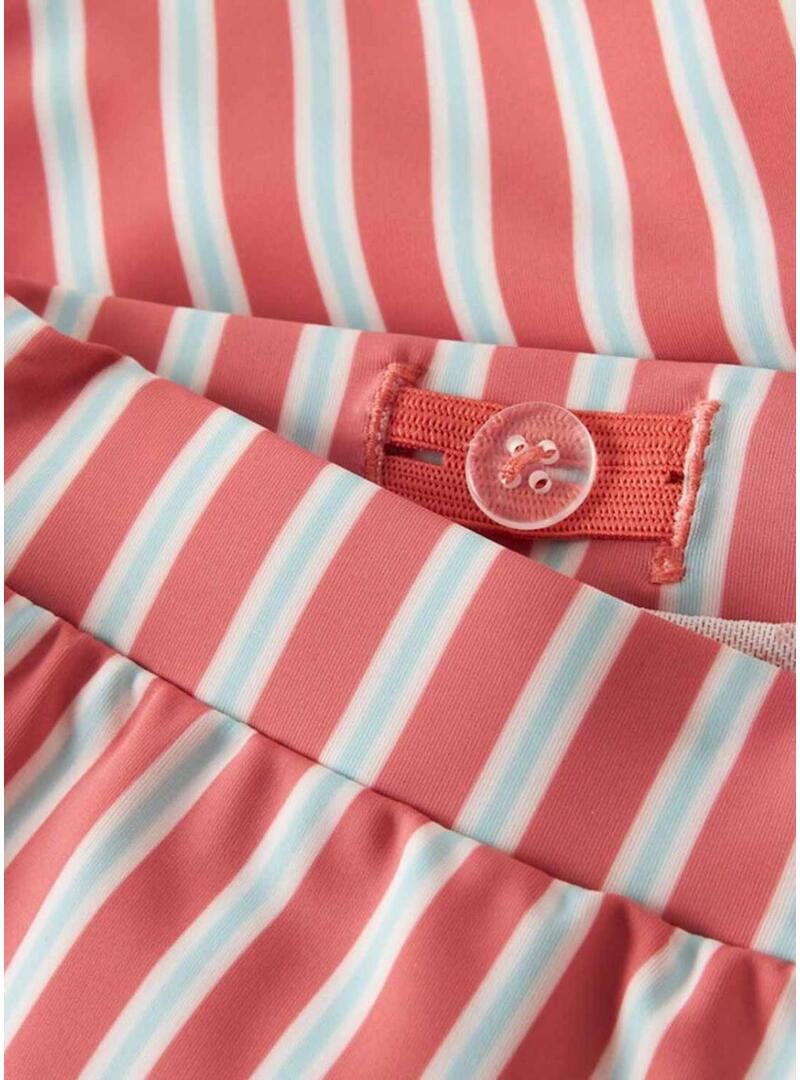Costume da bagno Name It. Colore corallo. Stampato a righe. Taglio aderente. Vita regolabile con cordino.