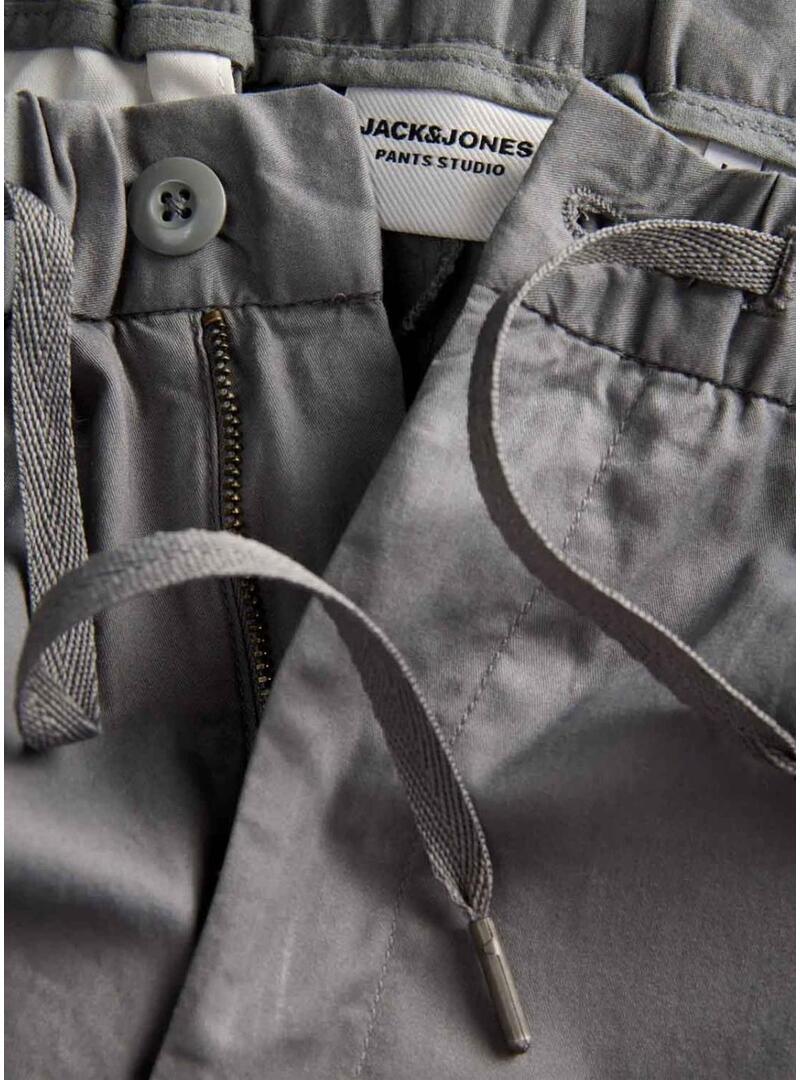 Pantaloni Jack and Jones. Modello Kane Rocco. Colore grigio. Vita elastica con coulisse. Chiusura a bottone e zip. Stile cinese. Tasche laterali. Taglio dritto.
