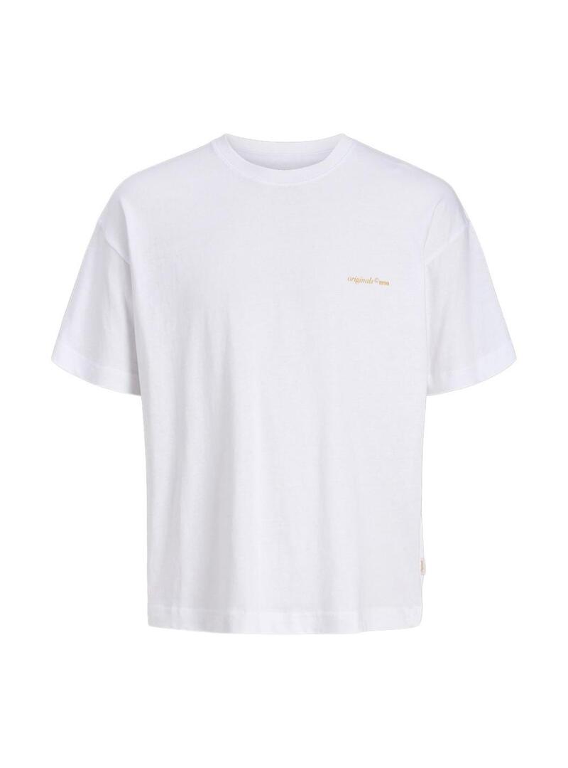 Maglietta Jack and Jones. Modello Ontauk. Colore bianco. Maniche corte. Collo rotondo. Taglio regolare. Grafica sul petto e sulla schiena. Tessuto leggero.