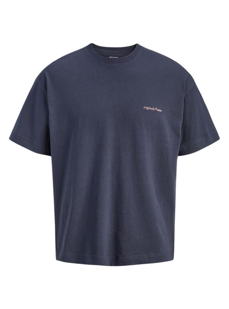 Maglietta Jack and Jones. Modello Ontauk. Colore blu navy. Maniche corte. Collo rotondo a costine. Taglio regolare. Grafica sul petto e sulla schiena. Tessuto leggero.