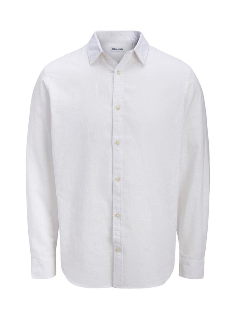 Camicia Jack and Jones. Modello Summer. Colore bianco. Colletto regolare. Chiusura con bottoni. Tessuto di cotone con lino. Stile basico. Vestibilità regolare.
