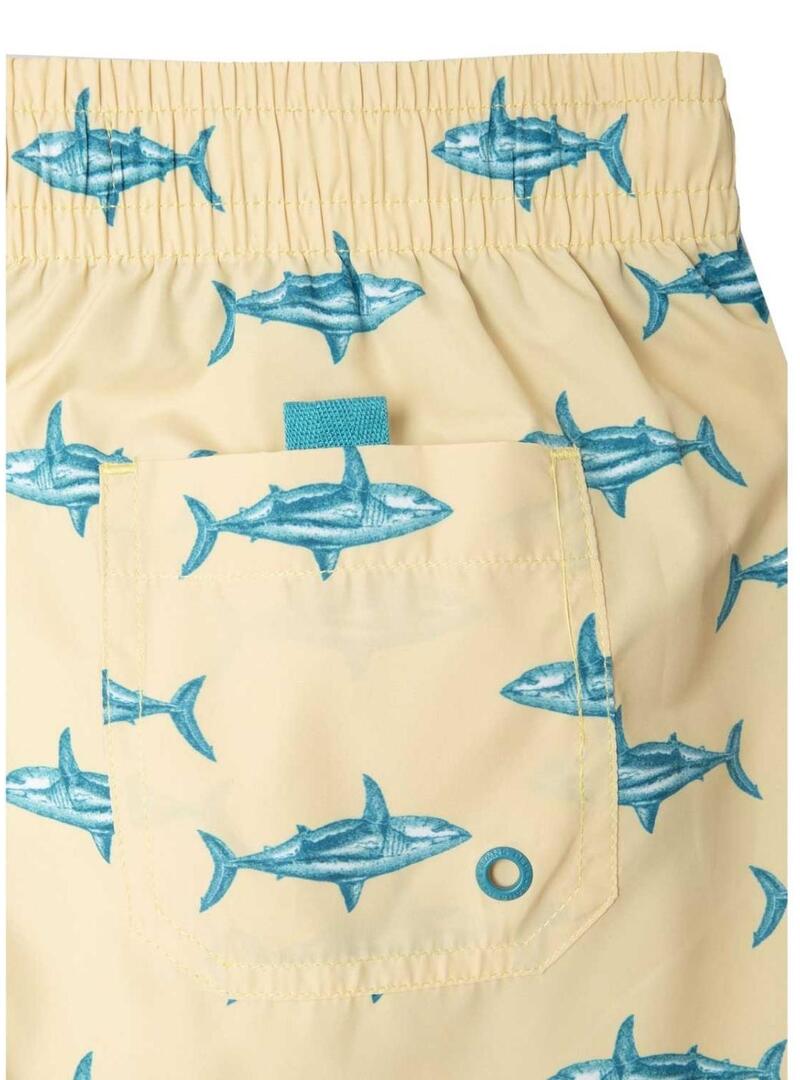 Costume da bagno Pepe Jeans. Colore giallo. Stampato con squali. Realizzato in tessuto di poliestere riciclato ad asciugatura rapida. Vita elasticizzata regolabile con coulisse. Tasche laterali. Tasca posteriore. Una tasca interna.