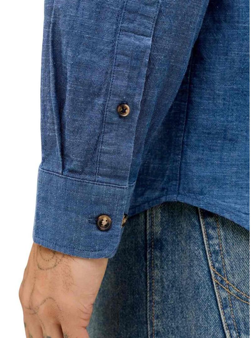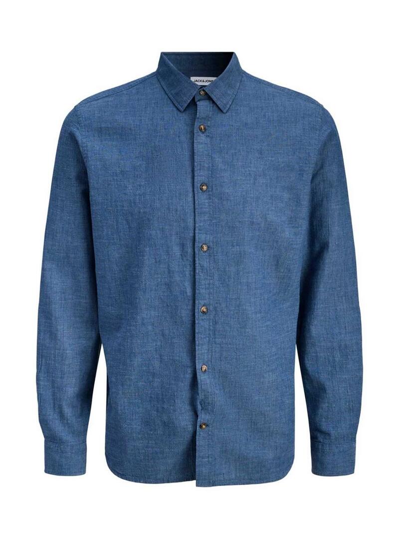 Camicia Jack and Jones. Modello Summer. Colore blu. Colletto da camicia regolare. Chiusura con bottoni. Tessuto in cotone con lino. Stile basic. Vestibilità regolare.