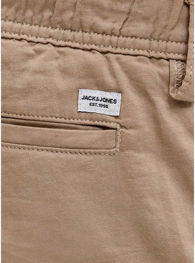 Bermuda Jack and Jones. Modello Jaiden. Colore cammello. Vita elasticizzata con coulisse regolabile. Chiusura con bottone e zip. Tasche laterali. Tasche posteriori a filetto. Taglio dritto. Passanti per cintura. Patch del marchio sul retro. Realizzato in cotone e lino.