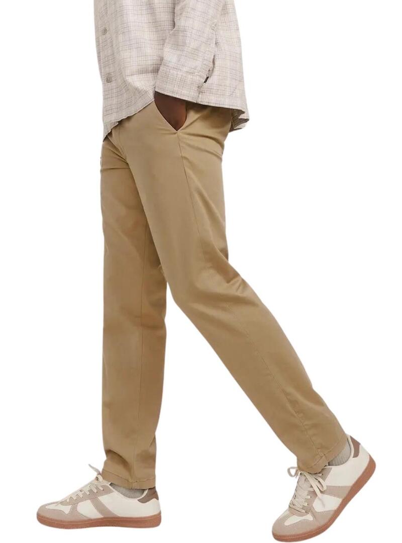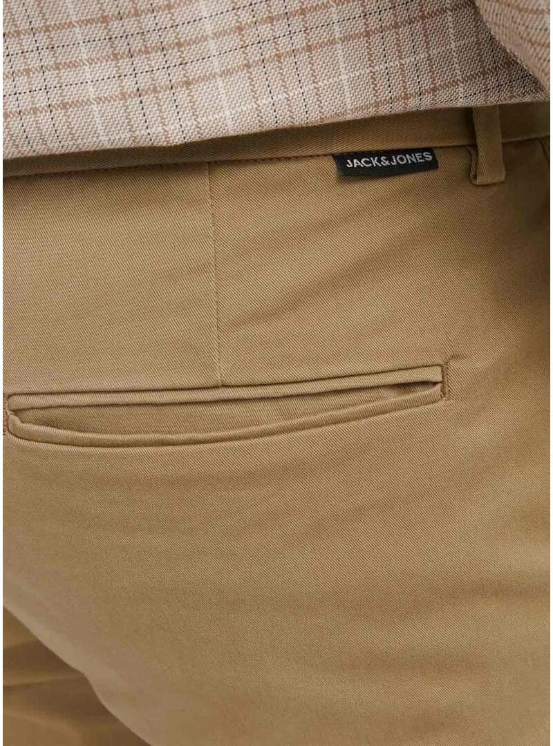 Pantaloni Jack and Jones. Modello Kane Chino. Colore beige. Chiusura con bottone e cerniera. Tasche laterali. Tasche a filetto posteriori. Taglio slim. Tessuto elasticizzato.
