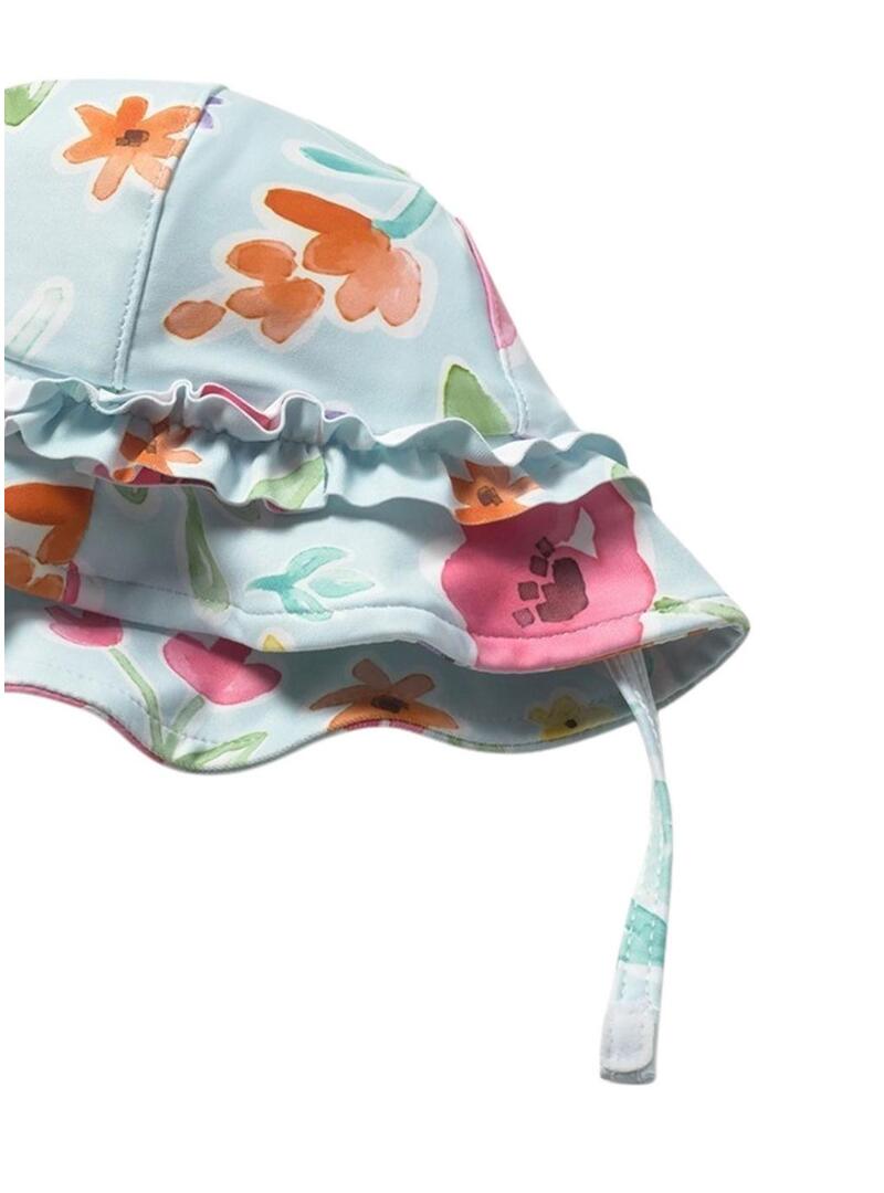 Costume da bagno con cappello Mayoral. Stampato floreale. Zip frontale. Bottoni a pressione nell'inguine. Volant decorativo sul fondo. Cappello con volant e chiusura regolabile in velcro. Tessuto con certificazione UPF 40. Protezione solare ultravioletta approssimativamente del 97,5%.