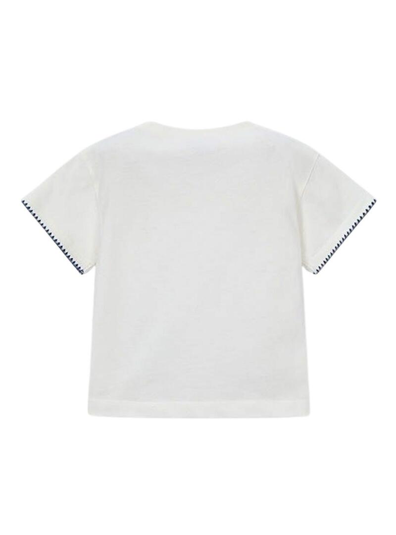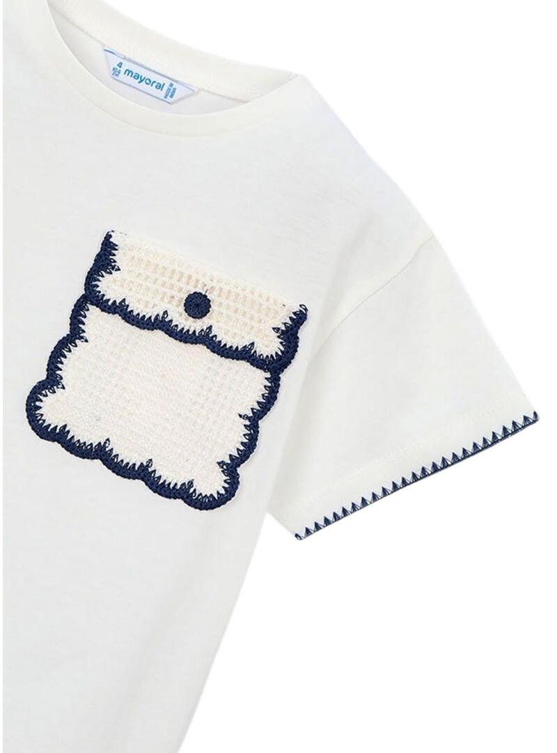 Maglietta Mayoral con taschino all'uncinetto bianca per bambina