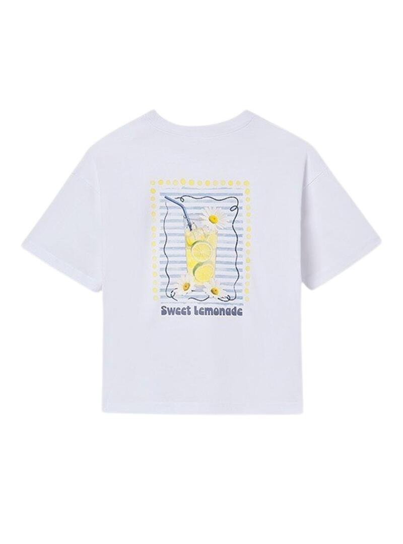 Maglietta Mayoral. Modello Cocktail. Colore bianco. Collo rotondo. Manica corta. Vestibilità dritta. Illustrazione stampata sulla schiena e sul petto.