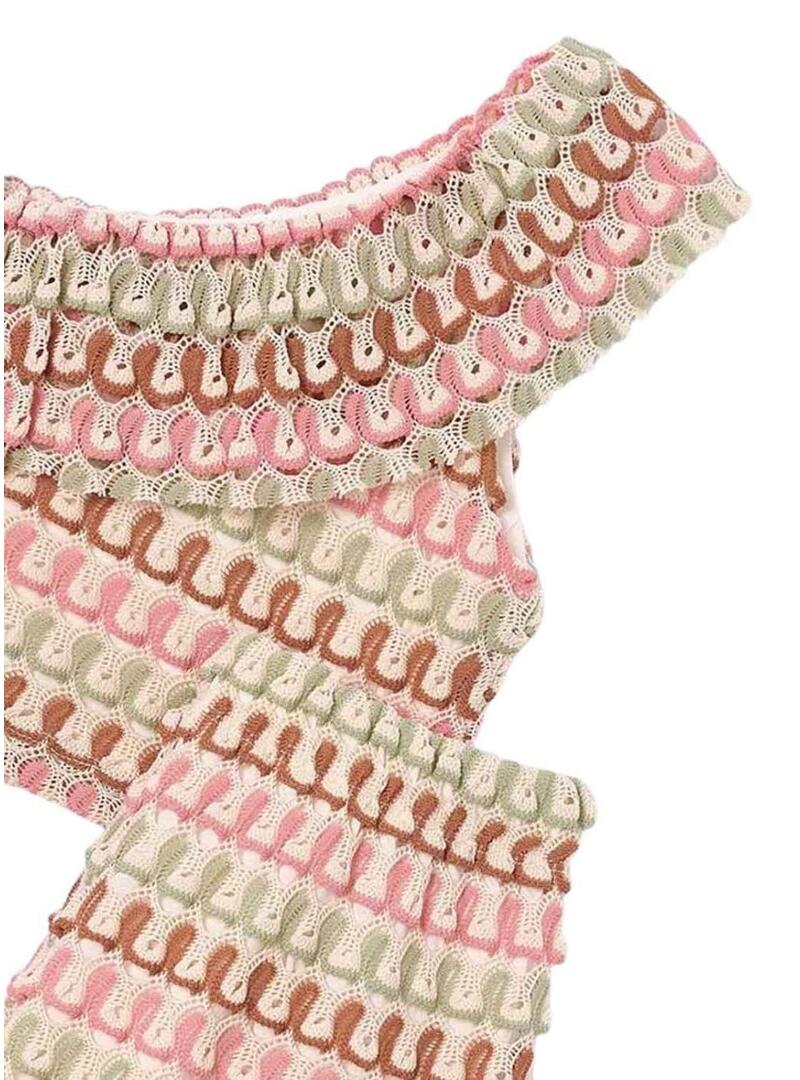 Set Mayoral. Modello a punto fantasia. Multicolore. Motivo etnico. Due pezzi. Crop top asimmetrico con volant. Tessuto elastico. Short con cintura regolabile all'interno.