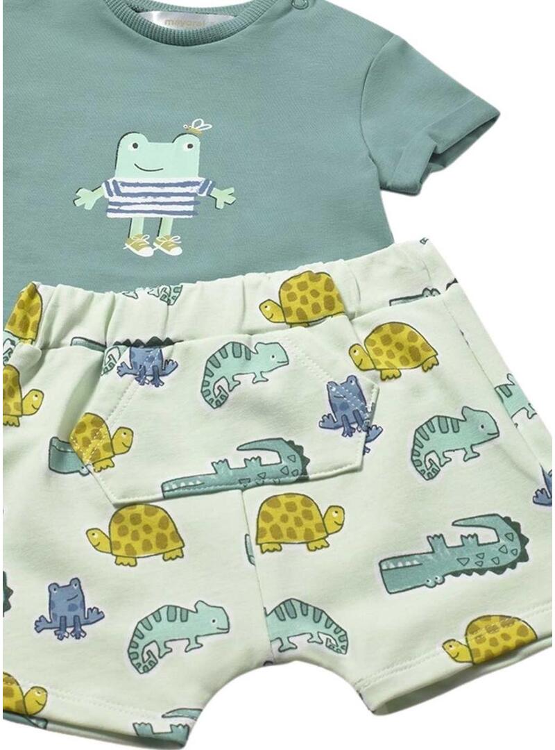 Set Mayoral ranocchia verde e bermuda animali per bambino.