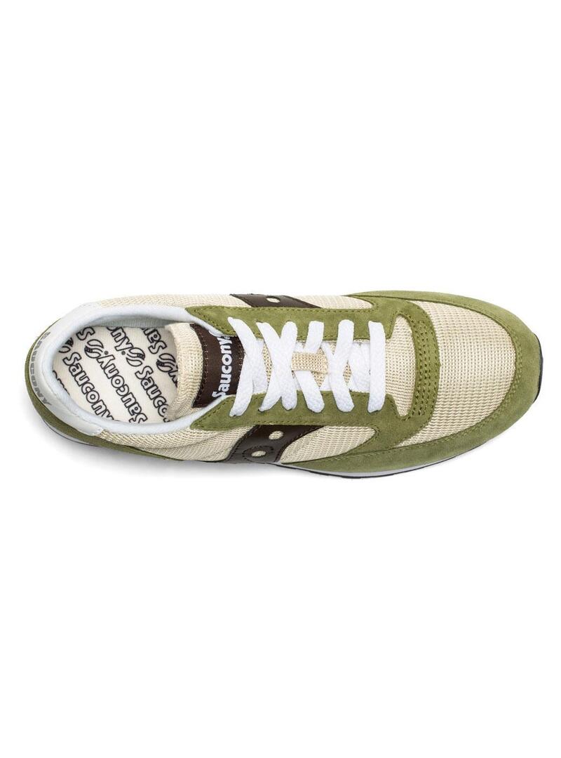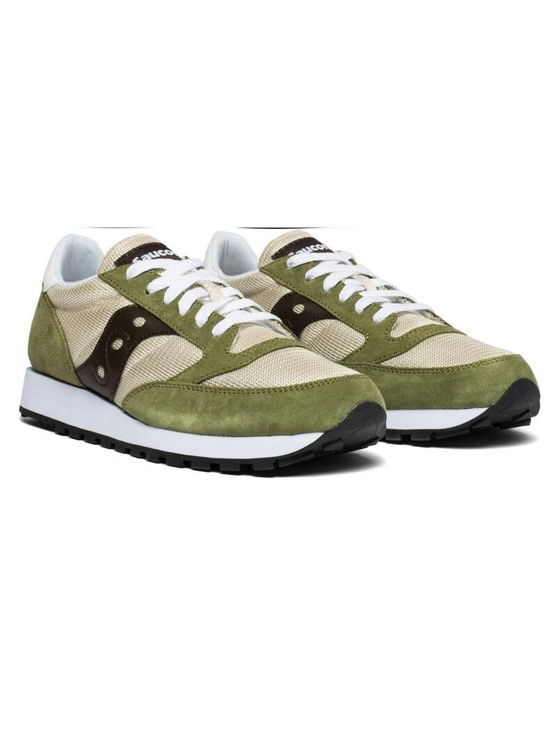 Sneaker Saucony. Modello Jazz Original Vintage. Colore verde Chiusura di lacci. Maglia superiore in pelle con combinata. Dettagli in beige e marrone. Suola in gomma Intersuola in EVA.